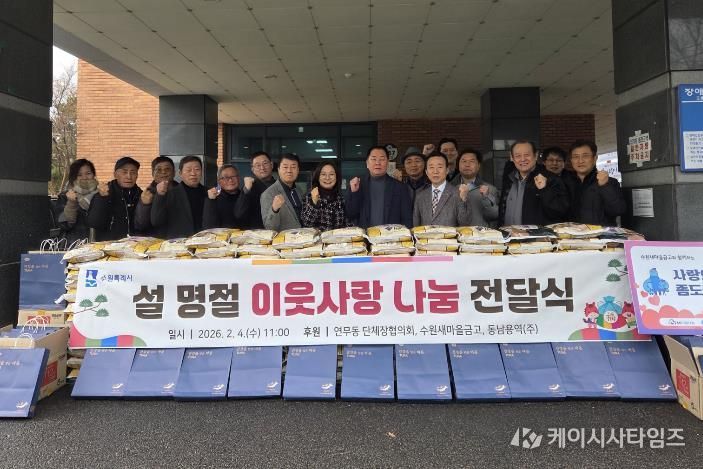 (케이시사타임즈) 수원시 장안구 연무동 행정복지센터는 지난 4일, 설 명절을 맞아 관내 어려운 이웃을 위한 나눔 전달식을 개최했다.