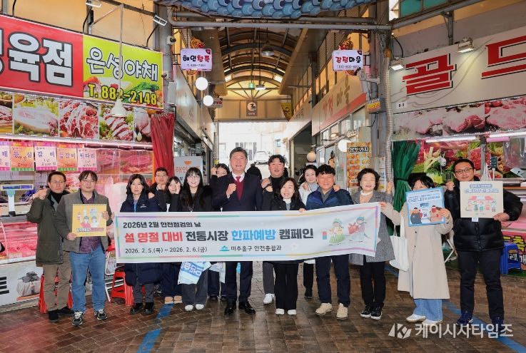 (케이시사타임즈) 인천 미추홀구는 설 명절을 앞두고 5일부터 6일까지 총 이틀간 관내 전통시장을 방문해 ‘동절기 한파 예방 캠페인 및 화재 대비 집중 안전 점검’을 실시한다.
