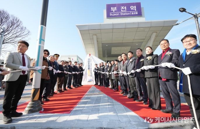 (케이시사타임즈) 부산 부산진구가 5일 오후 부전역 관광 인프라 개선사업의 일환으로 추진한‘부전역(고속철도)맞이길 조성사업 상징조형물 제막식’을 개최했다.