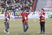 (케이시사타임즈) 경상남도는 28일 오후 김해종합운동장에서 열린 김해FC와 안산 그리너스의 홈 개막전을 찾아 김해FC의 프로리그 첫 공식 데뷔전을 축하하고 선수단을 격려했다. 이날 현장에는 박완수 도지사를 비롯해 홍태용 김해시장, 최학범 경상남도의회 의장, 안선환 김해시의회 의장, 이신기 배우 등이 참석했다. 김해FC의 프로 승격을 기다려온 관중 6천여 명도 함께해 개막전의 열기를 더했다. 박 지사는 경기 시작 전 그라운드 위에서 선수단을 만나 “K3리그 우승에 이어 프로 무대에 첫발을 내딛는 김해FC는 경남 스포츠의 새로운 자부심”이라며 “그동안 갈고닦은 기량을 마음껏 발휘해 김해시민과 도민들에게 기쁨과 감동을 선사해 달라”고 말했다. 이어 박 지사는 홍태용 김해시장, 배우 이신기 씨와 함께 시축에 나서며 김해FC의 역사적인 프로 데뷔전을 알렸다. 이후 관중석에서 도민들과 함께 경기를 관람하며 선수들을 응원했다. 박 지사는 이날 경기장을 찾아 김해FC의 K리그2 승격을 축하하고, 시민들이 김해FC와 함께 즐거운 시간을 보내길 바란다고 전하는 한편 선수단을 향해 힘찬 응원의 메시지를 전하며 선전을