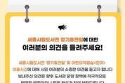 (케이시사타임즈) 세종시립도서관이 도서관 운영 방향에 대한 시민의 목소리를 듣기 위해 오는 22일까지 시민 의견 조사를 진행한다. 이번 설문의 주요 내용은 도서관 이용 편의와 직결되는 정기휴관일 운영일과 어린이 작업실 ‘모야’ 이용 시간이다. 의견 조사는 세종시립도서관 누리집을 통한 온라인 설문과 도서관 내 비치된 설문지 작성을 통해 누구나 참여할 수 있다. 제출된 의견은 도서관 운영 정책 수립 및 서비스 개선을 위한 기초 자료로 활용될 예정이다. 세종시립도서관 관계자는 “이번 조사는 시민의 눈높이에서 도서관 운영을 점검하는 과정”이라며 “조사 결과를 바탕으로 이용자 편의와 도서관 운영 효율화 방안을 종합적으로 검토해 나갈 계획”이라고 말했다.