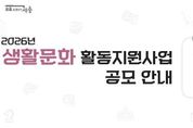 (케이시사타임즈) 세종시문화관광재단은 일상 속 시민 주도 생활문화 확산과 지역공동체 의식 강화를 위해 2026년 생활문화 활동지원사업 공모를 진행한다. 올해 지원 규모는 총 5천6백만 원으로, 공동체 활동기간에 따라 3단계로 구분하여 지원 성격과 규모를 다르게 적용해 맞춤형 지원을 추진할 예정이다. ▲형성기(공동체 설립 3년 차 이하) 단체에는 역량 강화를 위한 교육비 등 활동비 140만 원 ▲활성기(4년 차 이상 6년 차 이하) 단체에는 공연·전시·체험 등 프로그램 활동비 180만 원에서 200만 원 ▲환원기(7년 차 이상 10년 차 이하) 단체에는 250만 원에서 300만 원을 지원한다. 신청 자격은 대표자를 포함하여 시민 5인 이상으로 구성된 고유번호증 또는 사업자등록증을 보유한 생활문화 공동체면 모두 가능하다. 더불어, 생활문화 공동체의 지원 강화를 위해 생활문화 활동가 5명을 선발하여 공동체 활동 전반을 함께 지원할 예정이다.