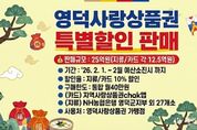 (케이시사타임즈) 영덕군은 설 명절을 앞두고 지역 상권 활성화와 소비 촉진을 위해 2월 1일부터 ‘영덕사랑상품권’을 10% 특별 할인 판매한다. 영덕군은 지난 1월 할인 판매의 높은 관심과 설 명절 수요를 반영해 2월 판매 규모를 기존의 두 배인 25억 원(지류·카드 각 12.5억 원)으로 확대했다. 다만, 보다 많은 이용자가 구매할 수 있도록 1인당 구매 한도를 월 40만 원으로 제한키로 했다. 상품권은 NH농협은행 영덕군지부를 포함한 관내 금융기관 28개 판매대행점에서 구매할 수 있으며, 카드형 상품권은 지역사랑상품권 chak앱을 통해 충전하거나 판매대행점에서 오프라인으로 충전할 수 있다. 황정기 일자리경제과장은 “설 연휴 기간 지역 소비를 촉진하고 더 많은 군민이 혜택을 누릴 수 있도록 25억 원 한도 내에서 할인 행사가 이뤄지는 만큼 예산이 소진되기 전 혜택을 누리시길 바란다”라고 전했다.