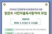 (케이시사타임즈) 인천광역시교육청주안도서관은 지역주민의 자발적 독서문화 확산을 위하여 2월 4일부터‘2026년 읽걷쓰 시민자율독서동아리’를 모집한다. 이번 모집은 시민이 주체가 되어 독서, 토론, 글쓰기 등 다양한 활동을 펼치는 동아리를 발굴·육성하기 위해 마련했으며, 선정된 동아리에는 활동을 위한 도서와 공간, 운영 물품을 지원하는 등 다양한 혜택을 제공할 예정이다. 모집에 대한 자세한 사항은 주안도서관 누리집을 확인하거나 독서문화과로 문의하면 된다.