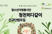 (케이시사타임즈) 부평구청소년꿈나래터는 오는 26일까지 2026년도 청소년자원봉사단 ‘청천히 다같이’ 단원을 신규 모집한다고 밝혔다. 청소년자원봉사단은 부평구에 거주하거나 재학 중인 13~16세 청소년을 대상으로 운영되는 자치조직이다. 봉사단은 지역 사회 내 다양한 봉사활동을 직접 기획․운영하게 된다. 이번 모집을 통해 선발된 단원들은 4월부터 12월까지 활동하며 ▲봉사시간 인정 ▲우수활동자 수상 기회 등의 혜택을 받는다. 또한 ▲지역행사 부스 운영 ▲봉사활동 기획 및 운영 등 다양한 활동에 참여할 수 있다. 배재석 부평구청소년꿈나래터 센터장은 “청소년들이 주체적인 자원봉사활동을 통해 지역사회에 대한 관심을 높이고 함께 성장하는 계기가 되길 바란다”고 말했다. 청소년자원봉사단 모집 관련 사항은 전화로 문의하거나, 부평구청소년꿈나래터 누리집 및 카카오톡 채널에서 확인할 수 있다.
