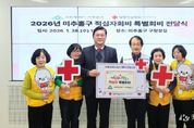 (케이시사타임즈) 인천 미추홀구는 28일 구청장실에서 대한적십자사 인천지사(회장 조의영)와 적십자봉사회 미추홀구협의회(회장 조혜정) 등이 참석한 가운데 적십자 특별회비 200만 원을 전달했다. 이날 전달된 특별회비를 포함한 적십자회비는 재난 발생 시 이재민 구호 활동, 취약계층 및 복지 사각지대 위기가정 지원 등 각종 인도주의 활동에 사용될 예정이다. 이영훈 구청장은 “지역 곳곳의 소외된 이웃에게 희망을 전하는 의미 있는 일에 동참할 수 있어서 기쁘다.”라며, “지역사회에 따뜻한 기부 문화가 널리 퍼질 수 있도록 함께 노력하겠다.”라고 말했다. 한편, 구는 매년 지역사회 소외계층을 돕기 위해 적십자 특별회비 납부에 동참하고 있으며 이를 통해 지역 내 어려운 이웃들에게 실질적인 도움을 주고 있다.
