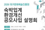 (케이시사타임즈) 대구광역시와 대구문화예술진흥원 관광본부는 3월 25일 오후 2시 대구예술발전소 수창홀에서 ‘숙박 사업 사전설명회’를 개최한다. 관광본부는 지역 숙박업소의 경쟁력 강화와 숙박시설 부족 문제 해소를 위해 ‘숙박시설 환경개선 사업’ 및 ‘숙소기반 디지털 관광안내 홍보물 제작 사업’을 추진하고 있다. 숙박시설 환경개선 사업은 단체 관광객 수용을 위한 환경개선을 지원하는 사업으로, 트윈룸 조성 및 간편 조식 공간 조성 등을 위한 지원금을 제공할 예정이다. 이를 통해 단체 관광객 유치 기반을 확대하고 숙박서비스 품질 향상을 도모한다. 숙소기반 디지털 관광안내 홍보물 제작 사업은 숙소 인근의 관광명소와 인기 방문지에 대한 관광정보를 수집해 다국어 디지털 홍보물을 제작·지원하는 사업이다. 이를 통해 종사자가 가진 외국인 관광객과의 언어소통에 대한 부담을 경감하고 숙박업소가 관광안내 거점 역할을 수행하도록 할 계획이다. 이번 설명회에서는 두 사업의 주요 내용과 공모요강 안내, 숙박업소의 관광객 수용태세 강화를 위한 인식 전환 등의 교육이 진행될 예정이며 설명회 참가 신청은 포스터의