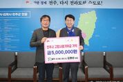 (케이시사타임즈) 설 명절을 앞두고 전주시를 응원하는 따뜻한 마음이 고향사랑기부제 고액 기부 행렬로 이어지고 있다. 전주시는 10일 김명성 ㈜에스에스티 대표가 전주시장실을 찾아 고향사랑기부금 500만 원을 기부했다고 밝혔다. 익산 삼기농공단지에 위치한 ㈜에스에스티는 지난 2010년 설립 이후 전시·광고 산업에 필요한 조명 장치 및 관련 장비를 생산하며 산업단지 기반의 제조 산업을 선도하고 있다. 김명성 대표는 이날 “평소 애정을 가져온 전주시의 발전에 보탬이 되고자 고향사랑기부제에 동참하게 됐다”면서 “이 기부금이 전주의 취약계층을 지원하고 시민의 삶의 질 향상에 의미있게 활용되기를 바란다”고 밝혔다. 우범기 전주시장은 “지역 발전을 향한 따뜻한 관심과 애정이 담긴 이번 기부는 전주시가 더 나은 미래로 나아가는 데 큰 힘이 될 것”이라며 “소중하게 전해주신 마음이 전주시의 발전과 취약계층의 지원을 위해 책임 있고 투명하게 사용될 수 있도록 노력하겠다”고 말했다. 한편 시는 모금된 고향사랑기부금을 재원으로 △청년만원주택 전주 청춘별채 △영화의 도시 전주, 미래 영화인 육성 △1인 가구 온