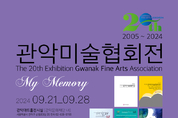 2024년 9월 21일부터 28일까지 서울시 관악구 관악문화재단 내에 위치한 관악아트홀 전시실에서 제20회 관악미술협회전이 열린다. 사단법인 관악미술협회는 2005년 3월에 창립하여 지역 주민들의 예술문화 체험 기회 확대를 위해 관악 깃발전, 인헌미술 축제, 행복나눔 작품전, 미술협회 정기 작품전 등 다양한 활동을 펼치고 있다. 협회는 매년 주제를 선정하여 전시회를 하고 있는데, ‘My memory’라는 주제로 열리는 이번 정기 작품전에는 73명의 작가가 참여하였다. 우리는 살면서 많은 것들을 경험하면서 그 중에서 소중한 것들을 기억하기도 하고, 또 잊고 살아간다. 지난 순간을 떠올릴 때 아무 감정도 느낄 수 없다면 그것은 '기억'에 불과하고, 가슴 한쪽이 먹먹해지거나, 서늘해지는 감정을 느끼듯이 '그리움'이 있다면 그것은 추억이라고 한다. '기억'으로 알고 있었던 과거가 어느 순간 '추억'으로 바뀌어지기도 하는데, 이처럼 살아가는 모든 순간은 '기억' 혹은 '추억'이 된다. 오늘의 어떤 순간도 같은 모습으로 되돌아 오지 않듯이, 우리들은 살면서 어떤 기억과 추억을 가지고 살아갈까? 그 기억과 추억을 화려한 색채로 화폭에 담고 있는 작가들이 다양한 작품들을