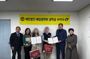 재단법인 배영장학회(이사장 배윤섭)는 12월 5일, 오후 5시에 서울시 광진구 능동주민센터 회의실에서 지역 장학금 기탁식을 진행하였다. 금번 장학금 수여대상자는 능동주민센터(동장 홍인순)로 부터 추천을 받은 백석예술대학교 최 선 학생에게 장학금과 장학증서를 수여하였고, 선화예술중학교 김유진 학생에게 장학금과 장학증서를 수여하였다. 배윤섭 이사장은 두 명의 학생에게 장학금과 장학증서를 수여한 후, 격려사를 통해 “세상을 살다 보면 여러 가지 많은 어려움에 봉착할 수 있지만, 용기를 가지고 살아 간다면, 어려움을 하나 하나 극복해 가며, 언젠가 선한 영향력을 행사할 수 있는 어른으로 성장할 수 있다면서, 꿈과 희망을 갖고 노력해 줄 것”을 당부하였다. 능동주민센터 홍인순 동장은 "학생들의 꿈을 응원하며, 소중한 장학금을 지원해 주신 재단법인 배영장학회에 깊이 감사드린다"며 "장학금이 학생들의 학업과 성장에 큰 힘이 되기를 바란다"고 전했다. 재단법인 배영장학회는 2023년 비영리법인 임의단체에서 올해 6월 5일 재단법인으로 재출범하였으며, 9월 30일에는 기획재정부에서 공익법인으로 지정을 받아 지정기부금 영수증 처리가 가능해짐으로써 장학금을 기탁하는 사람들에게