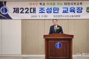 (케이시사타임즈) 대전서부교육지원청은 3월 3일, 제22대 조성만 교육장 취임식을 가졌다고 밝혔다. 조성만 교육장은 취임사를 통해 “아이들이 스스로 삶의 의미를 찾고 경로를 설계하는 자기주도적 역량을 길러주어야 한다”라며, “학교 현장 중심의 지원과 투명하고 합리적인 교육 행정을 통해 신뢰받는 서부교육을 만들겠다”라고 취임 소감을 밝혔다. 또한 소통과 협업이 살아있는 조직문화를 강조하며 “동료를 배려하는 따뜻한 마음을 바탕으로 전 직원이 한마음이 되어 학교 현장의 변화를 이끄는 행복한 서부교육을 만들어가자”라고 당부했다. 신임 조성만 교육장은 대전동부교육지원청 유초등교육과장, 대전교육정책연구소장, 대전서부초등학교장, 대전시교육청 초등교육과장 등 교육 관련 요직을 두루 거쳤으며, 이날 제22대 대전서부교육지원청 교육장에 취임했다.