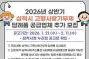 (케이시사타임즈) 삼척시는 고향사랑기부제의 안정적인 운영과 지역경제 활성화를 위해 답례품 공급업체 추가 모집을 실시한다고 밝혔다. 신청 자격은 삼척시에 주소를 둔 사업체로서 답례품 공급이 가능한 품목을 생산 또는 배송할 수 있는 업체이며, 통신판매업 신고가 필수다. 모집 품목은 삼척시에서 생산·채취된 농·수·축·임산물과 가공식품, 삼척시 자원을 활용한 공예품, 관광·서비스 상품 등이다. 접수는 2월 9일부터 11일까지 삼척시청 본관 2층 총무과 고향사랑팀에서 방문 접수로 진행된다. 제출서류는 참가신청서, 공급제안서 등이며, 자세한 구비서류 목록은 삼척시 누리집을 참고하면 된다. 공급업체 선정은 서류심사와 필요시 현장평가를 거쳐 답례품선정위원회에서 최종 심의·결정하며, 결과는 2월 말 삼척시 누리집 공고와 함께 개별 통보할 예정이다. 시 관계자는 “지역 특산품과 관광자원을 활용한 다양한 답례품을 마련함으로써 기부자들의 선택 폭을 넓히고, 기부문화가 지역사회에 더욱 확산될 것으로 기대한다”며 “관심 있는 지역 업체들의 적극적인 참여를 바란다”고 말했다.