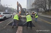 (케이시사타임즈) 수원시 장안구는 도로 파임(포트홀)으로 인한 교통사고 위험을 예방하고 주민 불편을 최소화하기 위한 ‘포트홀 보수전담반’을 3월까지 운영한다고 밝혔다. 장안구에서는 해빙기, 강설‧강우, 교통량 증가 등으로 포장면 손상이 반복 발생하는 구간 및 시기에 대해 신속한 현장 대응이 중요하다고 판단하여, 전담 인력과 장비를 갖춘 즉시 대응반을 운영한다. 보수전담반은 도로를 수시 점검하는 한편, 도로 파손 신고 접수 시 응급 복구를 우선 시행한 뒤 본 보수를 신속히 추진할 방침이다. 주요 대상은 주간선도로, 버스정류장, 교차로, 어린이보호구역과 통학로 등 이용량이 많거나 위험도가 높은 구간이며, 야간 및 휴일에도 비상대기 체계를 유지하여 긴급 상황에 즉시 대응하는 등 해빙기 취약구간 정비 및 안전사고 예방에 만전을 기할 계획이다. 또한, 장안구는 주민신고 등으로 포트홀을 조기에 발견하고 신속히 정비하는 ‘참여형 도로안전’ 체계를 강화할 예정이다. 이일희 장안구청장은 “작은 포트홀이라도 대형 사고로 이어질 수 있어 신속한 대응이 핵심”이라며, “3월까지 전담반을 집중 운영하고 주민신고 참여를 확