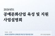 (케이시사타임즈) 인천테크노파크(인천TP)는 오는 13일 인천기업경영지원센터(송도 미추홀타워 3층)에서 ‘2026년도 인천광역시 공예문화산업 육성 및 지원사업 설명회’를 개최한다고 밝혔다. 이번 설명회는 인천광역시가 주최하고 인천TP가 주관한다. 지역 공예기업 및 공예인 등을 대상으로 2026년도 공예산업 지원사업의 추진 방향과 세부 내용을 공유하기 위해 마련됐다. 설명회에서는 인천광역시 공예산업 육성 및 지원사업과 한국공예·디자인문화진흥원의 정부 공예지원사업을 연계해 소개하고 질의응답을 진행한다. 지자체와 중앙정부 지원사업을 한자리에서 종합적으로 이해할 수 있도록 각 기관 관계자가 참여해 사업을 안내할 예정이다. 행사는 3월 13일 오후 1시 30분부터 3시까지 인천기업경영지원센터 비즈니스 라운지에서 진행되며, 참가 신청은 포스터에 있는 QR코드를 통해 할 수 있다. 자세한 사항은 인천TP 디자인지원센터 담당자로 문의하면 된다. 인천TP는 이번 설명회를 통해 2026년도 공예산업 지원사업 참여를 확대하고, 지역 공예인의 네트워크 형성과 사업 이해도를 높일 계획이다.