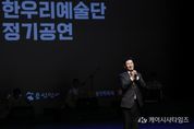 (케이시사타임즈) 용인특례시는 5일 오후 수지구 용인평생학습관 큰어울마당에서 ‘한우리예술단 정기공연’이 열렸다고 6일 밝혔다. 용인특례시가 후원하고 용인민예총이 주최·주관한 이날 행사는 우리 고유의 가락과 춤을 한자리에서 만날 수 있는 전통 공연으로 꾸며졌고, 이상일 시장은 1시간 40분간 진행된 공연을 끝까지 지켜본 뒤 공연단을 격려했다. 공연은 농악, 민요, 가야금, 검무 등으로 우리 민족 고유의 소리와 정서, 삶의 이야기를 그려내 큰 박수갈채를 받았다. 할미성 농악 보존회는 꽹과리, 장구, 북, 징, 태평소 등의 악기를 활용해 역동적인 농악 판굿을 선보였다. 용인 아리랑 보존회는 청춘가, 태평가, 창부타령 등 흥겨운 경기민요를 열창하며 분위기를 이끌었다. 이어 검무가 남지연씨의 검무공연이 펼져졌다. 앙상블 더 가야금은 대중에게 친숙한 고향의 봄, 꽃타령, 까투리타령 등을 가야금 병창으로 들려주며 국악의 매력을 선사했다. 한우리예술단은 화려한 가락이 돋보이는 설장구로 타악의 진수를 보여줬다. 이상일 시장은 축사에서 “올해로 32회를 맞이한 한우리