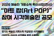 (케이시사타임즈) 경기도와 경기문화재단이 “2026 예술인 기회소득 확산사업(전시)“의 일환으로 진행하는 “아트 팝(Art POP)” 참여 시각예술인을 공개 모집한다. ‘2026 예술인 기회소득 확산사업(전시)’은 2023년부터 2025년까지 '경기도 예술인 기회소득'을 지원받은 시각예술인에게 지속적인 예술 창작 발표의 기회를 제공하고, 도민에게는 문화예술 향유 기회를 확대하기 위해 마련된 행사다. “아트 팝”의 신청 대상은 2023년부터 2025년까지 '경기도 예술인 기회소득'을 지원받은 시각예술 분야의 경기도 거주 예술인이다. 3년 동안 1회라도 지원을 받았다면 신청할 수 있고, 기존 “예술인 기회소득 페스티벌(전시)”에 참여한 이력이 있어도 신청 가능하다. 신청을 원하는 예술인은 국가문화예술지원시스템(NCAS)을 통해 지원신청서, 예술인 기회소득 지급 사실 증빙 자료 등을 제출하면 된다. 특히 이번 “아트 팝”에는 회화, 조각, 공예, 설치, 미디어, 일러스트, 웹툰, 그래피티 아트, 디지털 페인팅 등 모집 분야를 확대해 보다 다양한 시각예술 분야의 예술인들이 참여할 수 있도록 했다. &nbs