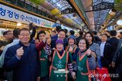 (케이시사타임즈) 이재명 대통령은 30일 오후 제주 타운홀미팅 '제주의 마음을 듣다' 종료 후, 김혜경 여사와 함께 1박 2일 제주 일정의 마지막 일정으로 동문시장을 방문했다. 동문시장은 제주시 도심에 위치한 대표적인 전통시장으로, 대통령 부부의 방문 소식에 상인들과 방문객들은 놀라움 속에 환호와 박수로 이들을 맞이했다. 입구에 서 있던 한 외국인 관광객은 어디서 왔냐는 이 대통령의 질문에 “오스트레일리아”고 답하기도 했다. 이 대통령 부부는 셀카촬영과 악수를 이어가며 과일모찌 가게에 들러 온누리상품권으로 한라봉모찌와 딸기모찌를 구입해 즉석에서 강유정 대변인, 하정우 수석 등과 함께 시식했다. 이동 내내 이어지는 셀카요청에도 이 대통령 부부는 반갑게 응했다. 그러자 시장을 찾은 많은 도민들은 이동 중인 이 대통령 부부를 향해 "사랑해요", "와 대박", "화이팅"을 외치는 소리로 화답했다. 이 대통령은 특히 어린이들의 사진 요청에 적극적으로 답했다. "애기 있어요"라는 소리가 들리면 발걸음을 멈추고 아이들과 하이파이브를 하거나 반갑게 셀카를 찍었다. 또한 강아지를 안고 이