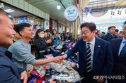 (케이시사타임즈) 이재명 대통령은 25일 오후 한국항공우주산업(KAI)에서 열린 KF-21 양산 1호기 출고식에 참석한 뒤 경남 진주시에 위치한 진주중앙시장을 깜짝 방문해 민심을 청취했다. 진주중앙시장은 1884년 개장한 유서 깊은 전통시장으로, 진주 지역의 대표 상업 거점으로 자리하고 있다. 이재명 대통령은 후보 시절이던 지난해 5월에도 이곳을 방문한 바 있다. 상인들과 주민들은 예고 없이 깜짝 등장한 이재명 대통령을 환호와 박수로 맞이했다. 현장에서는 “이재명 대통령 최고!”, “사랑합니다”, "감사합니다", “멋있어요”, “고생 많으십니다” 등 다양한 응원의 목소리가 이어졌다. 이재명 대통령은 시민들과 일일이 눈을 맞추며 인사했고, 셀카 촬영에 응했다. 특히 아이들을 지나치지 않고 몇 살인지 묻는 등 세심하게 소통하며 함께 사진을 찍었다. 이재명 대통령은 시장 곳곳을 둘러보고, 상인들에게 장사가 잘되는지 묻는 등 현장의 목소리를 청취했다. 이재명 대통령은 상추와 애호박 등을 현금과 온누리상품권으로 구입했고, 귤과 꼬치전, 호떡, 엿, 딸기 등을 즉석에서 맛본 뒤 구입했습니다. 이