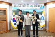 (케이시사타임즈) 경북농업기술원은 3일 전문 연구 역량 강화를 위해 박사학위를 취득한 농촌진흥공무원 2명에게 박사학위 취득패를 수여하고 격려했다. 급변하는 농업환경 속에서 디지털 AI 농업 확산, 기후변화 대응, 지속가능 농업 실현 등 새로운 과제가 대두되고 있는 가운데 연구직 공무원의 전문성은 지역 농업 경쟁력을 좌우하는 핵심 요소로 자리매김하고 있다. 이에 경북농업기술원은 업무와 학업을 병행하는‘주경야독’의 노력으로 박사학위를 취득한 직원에 대해 격려의 뜻을 전했다. 이번에 박사학위를 취득한 농식품환경연구과 장명환 박사는 '인삼 연속생산을 위한 인공토양 및 재배기술 연구'를 통해 인삼재배 시 발생하는 연작장해 문제 해결과 안정적 생산 기반 구축 방안을 제시했다. 해당 연구는 인삼 산업의 지속가능성과 고품질 생산 체계 확립에 기여할 것으로 기대된다. 또, 농식품환경연구과 정연규 박사는 'KPO3-실리카 나노복합체의 토양 내 행동' 연구를 수행해 토양 환경에서의 물질이동 및 거동 특성을 체계적으로 규명해 농업환경 안전성 확보와 과학적 토양관리 기술 고도화에 중요한 학술적·실용적 기반을 마련한 성과를