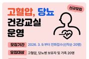 (케이시사타임즈) 영광군보건소는 만성질환 예방과 군민 건강수명 연장을 위해'2026년 상반기 고혈압·당뇨병 건강교실'참여자 20명을 선착순 모집한다고 밝혔다. 고혈압과 당뇨병은 자각증상이 적어 관리가 소홀해지기 쉬운 대표적인 만성질환으로, 방치할 경우 심뇌혈관질환 등 중증 합병증으로 이어질 수 있어 꾸준한 관리가 무엇보다 중요하다. 이번 건강교실은 3월 24일부터 주 2회(화, 목) 총 8회 과정으로 운영되며, ▲혈압·혈당 기초검사 ▲저염·저당 식생활 실습 ▲맞춤형 운동요법 ▲복약관리 지도 ▲스트레스 관리 프로그램 ▲소근육 활성화 창작활동 등 실생활 중심 교육으로 구성된다. 보건소 관계자는“약에만 의존하는 관리가 아니라, 스스로 실천하는 건강습관을 만드는 것이 이번 건강교실의 핵심”이라며 “4주간의 작은 변화가 평생 건강을 좌우할 수 있는 만큼 많은 군민의 적극적인 참여를 바란다”고 전했다. 모집 대상은 고혈압·당뇨병 진단자 또는 고위험군 군민(단, 전년도 참여자는 제외)이며, 참여를 희망하는 경우 영광군보건소 방문 또는 전화로 신청하면 된다. 교육비는 무료이다.