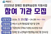 (케이시사타임즈) 여수시는 지역 내 장애인의 평생학습권 보장과 자립생활 능력 강화를 위해 '2026년 장애인 평생학습강좌 지원사업'에 참여할 기관·단체를 모집한다. 이번 사업은 장애인과 느린학습자를 대상으로 평생학습 프로그램 운영을 지원해 지속적인 배움과 사회참여 기회를 확대하고 비장애인과 함께하는 학습 환경을 조성해 장애 인식 개선과 지역사회 소통·협력 문화 확산에도 기여하고자 한다. 사업 운영 기간은 4월부터 10월까지이며, 공고는 3월 9일부터 24일까지 16일간 진행된다. 신청 접수는 3월 23일부터 24일까지 이틀간 받는다. 모집 대상은 여수시 소재 평생교육기관 및 단체로, 총 5개 기관·단체를 선정해 1개소당 최대 240만 원의 강사수당을 지원할 계획이다. 지원 분야는 ▲기술 습득을 통한 직업역량 강화 프로그램 ▲자아실현을 위한 문화예술 프로그램 ▲소통·협력을 위한 사회활동 참여 프로그램 등이다. 특히 장애인과 비장애인 간 교류를 통한 장애인식 개선과 자립생활 역량을 높이는 데 중점을 둔다. 신청은 방문 접수로 진행하며, 지원서 양식은 여수시 누리집 공고문에서 확인할 수 있다