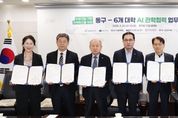 (케이시사타임즈) 대전 동구는 25일 대전대학교, 우송대학교, 대전과학기술대학교, 대전보건대학교, 우송정보대학, 한국폴리텍Ⅳ대학 대전캠퍼스와 ‘인공지능(AI) 기반 지역혁신을 위한 관학협력 업무협약’을 체결했다고 밝혔다. 이날 협약식에는 박희조 동구청장을 비롯해 남상호 대전대학교 총장, 진고환 우송대학교 총장, 이정화 대전보건대학교 총장, 손동현 우송정보대학 총장, 양형규 한국폴리텍Ⅳ대학 대전캠퍼스 학장 등 주요 관계자들이 참석해 협력 의지를 다졌다. 이번 협약은 AI 기술을 행정과 지역사회 전반에 접목해 공공 서비스의 질을 높이고, 지역 대학과의 협력을 통해 연구·교육·정책을 유기적으로 연계하기 위해 추진됐다. 협약에 따라 각 기관은 ▲AI 기반 행정 혁신 및 지역문제 해결을 위한 공동사업 추진 ▲AI 인재 양성 교육 ▲대학생 취·창업 연계 ▲주민 대상 AI 기초교육 및 체험 운영 등을 중심으로 협력 사업을 본격 추진할 계획이다. 또한, 구는 이를 바탕으로 행정 혁신을 한층 가속화하고, 지역 미래인재 양성과 산업 경쟁력 강화를 위한 기반을 단계적으로 확충해 나갈 방침이다. 박희조 동구청장은 “이번