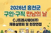 (케이시사타임즈) 홍천군은 지역 주민의 취업 기회를 확대하고 기업의 인력난을 해소하기 위해 오는 4월 17일과 24일 두 차례에 걸쳐 ‘2026년 구인·구직 만남의 날’ 행사를 개최한다. 이번 행사는 구인 기업과 구직자가 직접 만나 채용 설명과 면접을 진행하는 맞춤형 채용 행사로, 홍천읍 행정복지센터 3층 대회의실에서 열린다. 먼저 4월 17일 오후 1시부터 3시까지는 CJ프레시웨이㈜가 참여해 육군종합군수학교 1 수송연대 내 단체 급식 조리원 20명을 모집한다. 선발된 인력은 식재료 전처리, 조리, 세척, 배식 등의 업무를 담당하게 된다. 이어 4월 24일 오후 2시부터 4시까지는 관내 우수 제조기업인 태양 3C㈜의 채용 설명회가 열린다. 제조 설비 증설에 따라 생산 분야에서 근무할 신규 인력 50명을 모집하며, 현장에서는 기업 소개와 함께 1대1 심층 면접도 진행할 예정이다. 이번 행사는 사전 등록 또는 현장 방문을 통해 참여할 수 있다. 구직자는 기업의 상세 근로조건을 듣고 바로 면접에 참여할 수 있으며, 참여를 희망하는 사람은 이력서를 지참해 행사 시간 안에 방문하면 된다. 홍천군