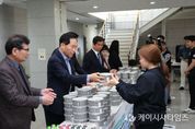 (케이시사타임즈) 충북 진천군은 대학생들의 식비 부담을 줄이고 건강한 식습관 형성을 돕기 위해 ‘2026년 천원의 아침밥’ 지원사업을 본격 추진한다고 밝혔다. ‘천원의 아침밥’ 사업은 아침 결식률이 높은 대학생들에게 양질의 식사를 1천 원에 제공하는 사업으로, 군은 관내 우석대학교 학생들을 대상으로 연간 2천100명을 지원할 계획이다. 이번 사업에는 총 1천50만 원의 예산이 투입되며, 학생이 1천 원을 부담하면 나머지는 정부와 지방정부, 대학이 공동으로 지원해 경제적 부담을 크게 낮췄다. 사업 시작을 기념해 진행된 현장 방문 행사에서는 전도성 진천 부군수가 직접 배식에 참여해 학생들과 소통하는 시간을 가졌다. 현장에서 만난 한 학생은 “식비 부담으로 아침을 거르는 경우가 많았는데, 저렴한 가격에 든든한 식사를 할 수 있어 학업에 더 집중할 수 있을 것 같다”고 소감을 밝혔다. 군은 사업의 안정적인 정착을 위해 △운영 내실화, 식단 품질 관리 △홍보 강화 △안정적인 예산 확보 등을 중점적으로 추진할 방침이다. 봉윤종 군 농산물유통팀장은 “천원의 아침밥 사업이 대학생들의 건강