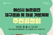 (케이시사타임즈) 아산시는 '농촌공간 재구조화 및 재생 기본계획' 수립과 관련해 지역 주민과 관계 전문가의 의견을 수렴하기 위한 주민공청회를 오는 3월 4일 오후 2시, 아산시 청소년교육문화센터 1층 스마트홀(시민로 500)에서 개최한다. 이번 기본계획은 아산시 2개 읍·9개 면을 공간적 범위로 하고, 2026년부터 2035년까지 10년간을 계획기간으로 수립되는 법정계획이다. 농촌공간의 체계적 기능 재편과 생활여건 개선을 목표로, 지역 특성을 반영한 중장기 발전 방향을 제시할 예정이다. 공청회에서는 △계획 개요 △현황 및 여건 분석 △재구조화 및 재생 기본구상 △부문별 계획 등을 발표하고, 토론과 질의응답을 통해 주민 및 전문가 의견을 폭넓게 수렴할 계획이다. 시는 공청회에서 제시된 의견을 종합해 아산시 농촌공간정책심의회 심의와 농림축산식품부 및 충청남도와 협의 과정에 반영할 방침이다. 기본계획(안)에 의견이 있는 주민은 3월 13일 오후 6시까지 전자우편 또는 우편으로 의견서를 제출하거나, 공청회에 참석해 질의응답 시간에 직접 의견을 제시할 수 있다.