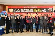 (케이시사타임즈) 포항시의회가‘2026 포항스틸러스 시즌카드’를 구입하며 올 시즌 포항스틸러스의 선전을 기원했다. 시의회는 23일 오전 의장실에서 김일만 의장을 비롯한 이재진 부의장, 상임·특별위원장과 포항스틸러스 김상락 사장, 이종하 단장, 박태하 감독 등이 참석한 가운데 ‘2026 포항스틸러스 시즌카드’ 구입행사를 열었다. 이날 행사에서 김 의장은 “항상 포항 시민과 포항시의회는 스틸러스와 함께하고 있다”며, “올 한해도 시민들의 응원을 받아 더욱 크게 성장하는 포항스틸러스가 되길 바란다”고 응원의 말을 전했다. 이에 포항스틸러스 김상락 사장은 “시즌카드 구매에 함께 해주신 모든 분들게 감사드린다”며, “올 시즌도 지역사회의 응원과 기대에 부응할 수 있도록 철저히 준비하겠다”고 화답했다.