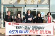(케이시사타임즈) 대전 동구의회 국민의힘 의원 일동이 20일 동구의회 앞에서 성명서를 발표하고, 행정통합에 대한 신중한 추진을 촉구했다. 이날 의원 일동을 대표해 박철용 의원은 “중요한 것은 속도가 아니라 내용”이라며 반대 입장을 분명히 했다. 이들은 성명서를 통해 행정통합 추진 과정에서 법안의 완성도와 실질적인 내용이 무엇보다 중요하다고 강조했다. 아울러 지역 여건과 재정적 영향 등에 대한 면밀한 분석이 선행돼야 한다고 덧붙였다. 특히 충분한 주민 의견 수렴과 내용 보완, 객관적 검증 없이 법안이 추진될 경우 향후 지역사회에 또 다른 부담을 초래할 수 있다며 우려를 표했다. 오관영 의장은 “행정통합은 단순한 행정구역의 변화가 아니라 주민의 삶과 직결되는 중대한 사안인 만큼, 졸속 추진이 아닌 신중하고 책임 있는 논의가 선행돼야 한다”라며 “주민 공감대 형성과 투명한 절차를 통해 실질적인 지역 발전으로 이어져야 한다”라고 말했다.