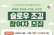 (케이시사타임즈) 제천시보건소 용두건강생활지원센터는 최근 조깅을 선호하는 운동 트렌드를 반영해 천천히 달리며 지키는 내 건강! 『슬로우 조깅(Slow Jogging)』 프로그램을 3월부터 본격 운영한다. 이번 프로그램에는 ‘걷기에서 뛰기로’ 자연스럽게 이어지는 중강도 신체 활동을 안전하게 경험할 수 있도록 대원대학교와 업무협약(MOU)을 체결하고, 재활운동 전공 교수진이 직접 참여한다. 프로그램은 주 1회, 총 4회 과정으로, 매주 수요일 오전 10시부터 11시까지 용두건강생활지원센터 주민참여실과 하소천 일원에서 진행된다. 3월에 1기 운영을 시작으로 2기(4월), 3기(5월), 4기(9월), 5기(10월), 6기(11월) 순으로 참여자를 모집해 지속적으로 신체 활동 참여 기회를 확대해 나갈 계획이다. 슬로우 조깅(Slow Jogging)은 걷기보다 약간 빠른 속도로 숨이 차지 않고 대화가 가능한 수준에서 천천히 달리는 유산소 운동으로, 체력 부담이 적어 운동 경험이 적은 주민도 무리 없이 참여할 수 있어 중장년층과 노년층 모두에게 적합한 생활밀착형 운동 프로그램이다. 제천시보건소 관계