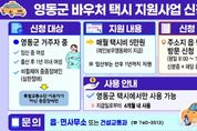 (케이시사타임즈) 충북 영동군은 교통약자의 이동 편의를 높이기 위해 임산부와 비휠체어 중증장애인을 대상으로 ‘바우처 택시 지원사업’을 시행한다고 밝혔다. 이번 사업은 영동군에 주소를 둔 임신 중 여성, 출산 후 1년 이내인 여성, 비휠체어 중증장애인을 대상으로 하며, 대상자에게는 1인당 매월 택시비 5만 원 상당의 바우처가 지원된다. 바우처는 레인보우영동페이를 통해 지급된다. 특히 비휠체어 중증장애인의 경우, 특별교통수단(휠체어 리프트 차량) 이용자가 아닌 중증장애인으로, 특별교통수단 또는 바우처 택시 중 선택해 이용할 수 있다. 임신 중 여성과 출산 후 1년 이내 여성은 산후 1년까지 지원을 받을 수 있으며, 지급된 바우처는 지급일로부터 4개월 이내에 사용해야 한다. 사용기한 내 미사용 시 바우처는 자동 소멸한다. 신청은 주소지 관할 읍·면사무소를 방문해 접수하면 되며, 평일 오전 9시부터 오후 6시까지 가능하다. 공통 제출서류는 신분증과 레인보우영동페이 카드이며, 임신 중 여성은 임신확인서(분만 예정일 기재), 출산 후 1년 이내 여성은 주민등록등본 또는 가