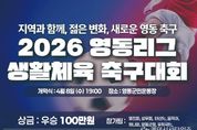 (케이시사타임즈) 충북 영동군 생활체육 축구의 중심 ‘영동리그’가 2026년, 한층 젊고 역동적인 변화와 함께 새롭게 출발한다. 영동군축구협회(회장 김영민)는 오는 8일 저녁 7시, 영동군민운동장에서 '제31회 2026 영동리그 생활체육축구대회' 개막경기를 시작으로 8월까지 약 4개월간의 리그 일정에 돌입한다고 밝혔다. 이번 리그는 매주 수요일 개최되며 ▲영친회 ▲성우회 ▲하나회 ▲태산FC ▲움직여 ▲영동군청FC ▲우체국FC 등 총 7개 팀이 참가해 풀리그 방식으로 치열한 경쟁을 펼칠 예정이다. 특히 이번 리그는 지난 3월 일라이트 골프앤리조트의 전폭적인 후원으로 성황리에 마친 ‘전국 유소년 축구 스토브리그’의 열기를 이어받아 더욱 기대를 모으고 있다. 유소년 대회 유치를 통해 지역 경제 활성화에 기여했던 성공 사례를 바탕으로, 이번 영동리그 역시 지역 기업과 상생하는 스포츠 마케팅의 핵심 모델로 추진된다. ‘골 1만 원의 가치’… 축구로 실현하는 따뜻한 나눔 올해 리그의 가장 큰 변화는 ‘골 1개당 1만 원 적립 기부제’의 도입이다. 경기 중 기록되는 모든
