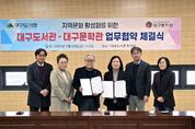 (케이시사타임즈) 대구문학관과 대구도서관은 지난 1월 30일 독서문화 진흥과 지역문화 활성화를 위한 업무협약을 체결했다. 대구도서관에서 열린 이번 협약식에는 하청호 대구문학관 관장과 권현주 대구도서관 관장 외 각 기관의 실무자들이 참석하여, 두 기관의 상호협력 방안을 공유하며 지역 문학 및 문화예술의 가치 확산을 위한 활동을 공동으로 추진하는 데 뜻을 모았다. 양 기관은 이번 업무협약을 시작으로 앞으로 독서문화 진흥을 위한 사업 발굴 및 추진, 독서문화 프로그램 운영을 위한 전문 강사 및 인력 지원, 전시 및 문학 프로그램 운영 협업 활동을 함께 적극적으로 펼쳐 나갈 계획이다. 양 기관의 대표는 “지역에서 독서 및 문학향유의 중심에 선 두 기관 간의 이번 업무협약을 계기로 앞으로 양질의 창의적인 프로그램 개발을 통해 서로 간의 인적, 물적 교류가 활발하게 이루어져 지역의 독서문화를 선도해 갈 수 있기를 희망한다.”고 이번 업무협약에 대한 기대를 밝혔다.