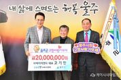 (케이시사타임즈) 고기한 ㈜에이치앤티 대표가 3일 울주군에 고향사랑기부금 연간 최고액인 2천만원을 전달하면서 4년째 고향사랑을 실천하고 있다. ㈜에이치앤티는 울주군에 소재한 기업체로 영상 감시, 재난 예·경보, 전광판 시스템을 설치 및 유지보수업을 하고 있다. 2023년부터 울주군 저소득층 의료비·주거비 지원에 힘을 보태고 있으며, 지난해에는 대형 산불이 발생한 울주군과 고향인 경북 영덕군에 성금 총 2천만원을 전달하는 등 재난 피해 이재민 지원에도 적극 나섰다. 고기한 대표는 “고향사랑기부로 새해를 시작하게 돼 뜻깊고 기쁘다”며 “지역을 행복하게 만드는 좋은 제도에 많은 분들이 함께해주길 바란다”고 말했다. 이순걸 군수는 “2023년부터 매년 울주군 발전을 위해 기부해주신 고기한 대표께 깊은 감사를 드린다”며 “기부금은 군민과 기부자가 공감할 수 있는 사업에 투명하고 소중하게 사용하겠다”고 밝혔다. 한편 올해부터 고향사랑기부 금액이 10만원 초과 20만원 이하인 경우 기존 16.5%였던 세액공제율이 44%로 상향됐다. 산불 등 특별재난지역에 선포일로부터 3개월 이내 20만