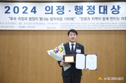 오산시의회 이상복 의장은 지난 11일 경기도 일간기자단에서 수여하는 2024년 의정행정대상에서 기초의회 부문 우수 의정대상을 수상했다. 이상복 의장은 제8대 오산시의회 시의원으로 의정활동을 시작했으며 현재 제9대 후반기 의장을 맡아 의장으로서 겸손과 배려의 리더십으로 후반기 의회를 안정적으로 이끌고 있다는 평가를 받고 있다. 또한 오산시 마을행정사 운영에 관한 조례를 제정하여 시민들에게 무료 행정상담 서비스를 제공함으로써 시민 복리 증진에 이바지하였으며 오산시의회 회의 규칙을 개정하여 기존 후보 등록 절차가 없는 폐쇄적인 의장단 선거 방식을 사전 후보 등록제 변경함으로써 투명한 의회 운영에 기여하였다. 이날 이상복 의장은 수상소감에서“제9대 후반기 의장으로서 오산시의회가 시민의 눈높이에서 소통하고 생산적인 대안을 만들어내는 합리적인 의회가 되도록 최선을 다하겠다.”고 밝혔다.