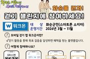 (케이시사타임즈) 화순군은 27일 군민의 일상 속 걷기 실천을 유도하고 걷기 문화 확산을 위해 오는 3월부터 11월까지 모바일 걷기 앱 ‘워크온’을 활용한 군민 걷기 챌린지를 운영한다고 밝혔다. 이번 챌린지는 화순군민이면 누구나 참여할 수 있으며, 참여는 ▲워크온 앱 설치 ▲화순군 공식 커뮤니티 가입 ▲챌린지 화면에서 ‘참여하기’를 선택한 후 스마트폰을 소지하고 걸으면 된다. 다만, 참여 지역이 화순군으로 제한되어 있어 휴대폰 위치 설정을 반드시 활성화한 후 진행해야 한다. 화순군은 9개월간 걷기 챌린지를 운영할 계획이며, 1차 챌린지는 3월 6일부터 25일까지 20일간 진행된다. 목표는 15만 보 달성으로, 목표를 달성한 군민 90명에게는 추첨을 통해 모바일 상품권(5천 원권)을 지급할 예정이다. 박미라 보건소장은 “다양한 걷기 챌린지를 통해 군민들이 일상에서 자연스럽게 걷기 습관을 기를 수 있도록 돕겠다”라며, “걷기 실천을 통해 걷기 좋은 동네, 건강한 화순을 만드는 데 군민 여러분의 많은 참여들 부탁드린다”라고 말했다.