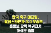 홍명보 감독이 이끄는 한국 축구 국가대표팀이 팔레스타인과의 첫 경기를 0-0 무승부로 마무리했다. 이번 경기는 2026년 북중미 월드컵 아시아 3차 예선 B조 1차전으로, 2024년 9월 5일 한국과 팔레스타인이 맞붙었다. 한국은 경기 초반부터 팔레스타인의 빠른 역습에 고전하며 이렇다 할 공격 기회를 만들어내지 못했다. 특히 이강인과 황인범의 결정적인 슈팅이 아쉽게 무산되면서 득점 없이 전반전을 마쳤다. 상대의 압박에 수비에서도 다소 불안한 모습을 보이며 경기 흐름을 제대로 가져오지 못했다. 후반 들어 한국은 공격적인 전술로 팔레스타인 수비를 흔들며 몇 차례 득점 기회를 만들었다. 하지만 결정적인 순간마다 오프사이드로 골이 취소되거나, 마무리에서 아쉬움을 남기며 득점에 실패했다. 여러 차례 코너킥과 프리킥 기회가 주어졌으나, 이를 살리지 못한 것이 무승부의 주된 원인이 됐다. 이번 경기는 홍명보 감독의 10년 만의 대표팀 복귀전으로 많은 기대를 모았다. 그러나 홍 감독의 첫 경기에서 그의 전술과 선수 기용이 예상보다 성과를 내지 못하며, 향후 개선이 필요하다는 평가를 받았다. 팬들과 전문가들은 다음 경기에서 더 나은 모습을 기대하고 있다. 한국 대표팀은 다음
