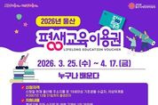 (케이시사타임즈) 울산시는 시민 누구나 평생학습의 기회를 누릴 수 있도록 ‘2026년 울산광역시 평생교육이용권(이하 이용권) 지원사업’을 본격 추진한다고 밝혔다. 이번 사업은 저소득층, 중장년, 노인, 장애인 등 다양한 계층을 대상으로 평생교육 수강료를 지원하는 제도로, 시민의 학습권 보장과 삶의 질 향상을 목표로 추진된다. 이용권 대상자로 선정되면 평생교육 강좌 수강료와 교재비로 사용할 수 있는 35만 원이 포인트로 지원된다. 대상자는 지급된 포인트로 관내 등록된 67개 사용기관의 온·오프라인 강의를 수강할 수 있다. 사용기관은 평생교육이용권 누리집에서 확인 가능하다. 올해 평생교육이용권은 총 2,404명 규모로 지원된다. 지원 대상자는 ▲저소득층 성인(19세 이상 기초생활수급자․차상위계층), 등록장애인(19세 이상)뿐만 아니라 ▲노인(65세 이상) ▲디지털 관련 평생교육 수강 희망자(30세 이상) ▲지역특화 대상자(40세 이상~65세 미만) 등 다양한 계층을 지원해 전 세대가 학습 기회를 누릴 수 있도록 할 계획이다. 우선, 1차로 울산시에 주소를 둔 19세 이상