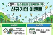 (케이시사타임즈) 청주시는 지구의 날(4.22.)을 기념하고자 일상 속 탄소중립 실천 문화를 확산하기 위해 4월 한 달간 ‘탄소중립포인트제(에너지)’ 신규 가입 이벤트를 추진한다고 1일 밝혔다. 탄소중립포인트제(에너지)는 가정과 상업시설에서 전기, 수도, 도시가스 사용량을 절감할 경우 감축률에 따라 인센티브를 지급하는 온실가스 감축 실천 제도다. 인센티브는 감축률에 따라 가정은 연간 최대 10만원, 상업시설은 최대 40만원까지 받을 수 있다. 이번 이벤트는 4월 1일부터 30일까지 진행되며, 기간 내 신규 가입한 청주시민 중 200명을 추첨해 1만원 상당의 모바일 상품권을 제공할 예정이다. 참여를 희망하는 시민은 탄소중립포인트제(에너지) 누리집에서 가입하거나, 가까운 읍·면·동 행정복지센터 또는 청주시청 기후대기과를 방문해 신청하면 된다. 시 관계자는 “탄소중립 청주 실현을 위해서는 시민들의 자발적인 참여가 무엇보다 중요하다”며 “에너지 절약으로 온실가스를 줄이고 인센티브와 경품 혜택도 받을 수 있는 이번 이벤트에 많은 관심과 참여를 부탁드린다”고 말했다.