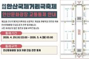 (케이시사타임즈) 안산시는 제22회 안산국제거리극축제 개최에 따라 4월 29일 오후 10시부터 5월 4일 오전 5시까지 안산문화광장 진입도로를 전면 통제한다고 15일 밝혔다. 통제구간은 안산문화광장 골든빌 사거리부터 레이크타운 사거리까지 광덕대로 양방향 1km 구간으로, 안산문화광장으로 연결되는 모든 골목길도 함께 통제된다. 해당 기간 차량과 자전거, 이륜차, 전동킥보드 등 바퀴 달린 이동 수단은 진입할 수 없다. 또 안산문화광장을 통과하는 모든 시내버스도 우회 운행할 예정이다. 시는 특히 4월 30일 출퇴근 시간대 교통 혼잡이 예상되는 만큼 차량 이용자는 우회도로를 이용해 달라고 당부했다. 아울러 인근 주민과 상가 상인, 이용객, 배달 종사자 등의 적극적인 협조도 요청했다. 이민근 안산시장은 “대규모 국제거리극축제 개최에 따라 교통 통제가 불가피한 만큼 시민 여러분의 이해와 협조를 당부드린다”며 “안전하고 즐거운 축제 운영을 위해 최선을 다하겠다”고 말했다. 한편, ‘제22회 안산국제거리극축제’는 5월 1일부터 3일까지 3일간 안산문화광장 일원에서 진행된다.