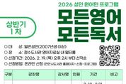 (케이시사타임즈) 천안시 청수도서관은 오는 3~ 6월 원어민과 함께하는 성인 영어 프로그램 ‘모든 영어 모든 독서’를 운영한다고 13일 밝혔다. 이번 프로그램은 수준별 영어독서 및 회화 과정으로, 초급 2개 강좌와 중급 1개 강좌로 구성됐다. 초급 강좌는 ‘Intro Storybooks’와 ‘Travel the World’로, 동화책과 그림책을 활용해 자연스럽게 영어의 첫걸음을 뗄 수 있도록 마련됐다. 중급 강좌는 ‘Dreams of Heroism’으로, 영시를 함께 읽고 깊이 있는 감상을 나누는 시간을 갖게 된다. 수강 신청은 오는 19일 오후 2시 천안시도서관 누리집을 통해 가능하며, 자세한 사항은 전화로 문의하면 된다. 이재순 청수도서관장은 “이번 강좌가 시민들의 영어 독해 능력 향상과 인문학적 소양 함양의 디딤돌이 되길 기대한다”고 말했다.