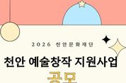 (케이시사타임즈) (재)천안문화재단은 ‘천안 예술창작 지원사업’ 공모를 진행한다고 13일 밝혔다. 모집 분야는 전문예술인, 전문예술단체, 신진예술인, 신진예술단체, 생애 최초 지원, 신생예술단체, 생활예술동호회, 장애인, 전통문화예술 계승 등 총 9개 사업이다. 신청 대상은 공고일 기준 천안에 주소지를 두고 예술 활동을 하는 예술인 및 단체, 동호회, 장애 예술인 및 단체다. 신청을 희망하는 경우 필수 이행 조건에 따라 공모 신청 전 천안문화 예술뱅크에 가입해야 한다. 더 많은 예술인에게 혜택을 지원하기 위해 3년 연속 보조금 수혜단체를 대상으로 1년 안식년제가 적용된다. 또 개인 예술인은 격년 지원이 적용돼 지난해 지원받은 예술인은 올해 신청할 수 없다. 신청 접수는 내달 9~ 13일 재단 예술인지원팀에 방문 또는 우편으로 하면 된다. 자세한 사항은 재단 누리집에서 확인할 수 있다.