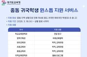 (케이시사타임즈) 경기도교육청이 18일 ‘중동 귀국 학생 원스톱 지원 서비스’를 운영하며 재외국민 학생의 학습권 보호와 안정적인 국내 학교 적응을 적극 돕는다. 이번 서비스는 지난 12일 열린 교육부 신학기 점검 회의에 따라 중동 지역 분쟁 및 정세 악화로 긴급 귀국하는 학생의 학습 지원을 위해 마련했다. 지원 대상은 중동 지역 정세 악화로 국내에 중도 귀국한 재외국민 학생 중 신청자다. 운영 기간은 3월 18일부터 상황 종료 시까지로, 경기도교육청 알림창(팝업)에서 신청할 수 있다. 도교육청 학교교육정책과에서 전담 창구를 맡고, 관련 부서 및 교육지원청과 긴밀히 협력하며 국제교류, 학적, 유·초·중·고 교육과정, 심리 및 정서, 한국어 교육 등에 통합 지원 시스템을 가동한다. 우선 이들을 위한 입학 및 취학 절차를 획기적으로 간소화한다. 유치원은 유보통합포털에서 입학 가능 인원을 실시간 현행화하고, 초·중등 학생은 필수 서류 이외에 기타 서류가 미비하더라도 우선 취학·편입학 처리를 진행한 후 사후에 보완할 수 있도록 지침을 마련했다. 또한 학교생활 적응을 위한 심리 및 교육 서비스 강