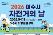 (케이시사타임즈) 여수시는 자전거 이용 활성화와 저탄소 녹색성장에 대한 시민들의 관심을 높이기 위해 오는 18일 토요일 ‘2026년 자전거의 날’ 기념행사를 개최한다. 이번 행사는 여수시가 주최하고 여수시사이클연맹이 주관하며, 오전 9시 30분부터 미평공원 일원에서 진행된다. 행사에는 정현구 시장 권한대행을 비롯해 지역 국회의원과 시의원, 자전거 동호회원, 시민 등 300여 명이 참석해 자전거 사랑 실천에 동참할 예정이다. 특히 ‘자전거 대행진’은 미평공원에서 출발해 옛철길공원 구간을 따라 만흥공원까지 왕복하는 9km 코스(약 80분 소요)로 운영되며, UNFCCC 기후주간과 2026여수세계섬박람회 성공개최를 기원하는 의미를 담았다. 당일 자전거를 가지고 오지 않은 시민도 현장에 준비된 공영자전거 ‘여수랑’을 이용할 수 있다. 시 관계자는 “가족 단위 시민들의 많은 참여를 기대한다”며 “이번 행사를 통해 일상 속 자전거 이용 문화를 함께 공유하는 계기가 되길 바란다”고 전했다.