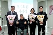 (케이시사타임즈) 성동구의회 박성근, 전종균, 이현숙 의원이 지난 3월 6일 열린 성동느티나무장애인자립생활센터 신년회 및 정기총회에서 장애인 복지 향상과 자립생활 기반 확대에 기여한 공로를 인정받아 표창패를 수상했다. 느티나무장애인자립생활센터는 장애인이 지역사회에서 독립된 개인으로서 자신의 삶을 스스로 선택하고 결정할 수 있도록 지원하는 곳으로, 성동구의회 의원들의 2024~2025년도 의정활동을 모니터링해 우수의원을 선정했다고 밝혔다. 이현숙 의원이 최우수상을, 박성근 의원과 전종균 의원이 우수상을 각각 수상했으며, 세 명의 의원들은 적극적으로 장애인의 목소리를 대변하고 지속적인 조례 발의를 통해 장애인 제도 개선에 힘써왔다는 평가를 받았다. 박성근 의원은 '성동구 발달장애인 실종 예방 지원에 관한 조례', '성동구 장애인 문화예술 활동 지원 조례' 제정을 통해 발달장애인의 안전과 복지증진을 도모하고, 장애인의 문화 향유 기회 확대를 위한 제도적 틀을 마련했다. 전종균 의원은 장애인에 대한 따뜻한 시선과 애정을 바탕으로 관련 정책과 현안에 높은 관심을 갖고, 지역사회 내 장애인의 자립 환경 마