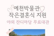 (케이시사타임즈) 예천박물관은 오는 3월부터 야외 잔디마당을 ‘작은결혼식’ 장소로 무료 대관한다고 밝혔다. 이번 사업은 과도한 결혼 비용과 형식 중심의 예식 문화에서 벗어나, 실속 있고 가치 중심의 결혼식을 장려하기 위해 마련됐다. 특히 자연 친화적이고 개방감 있는 예천박물관 야외 잔디마당의 공간적 특성을 살려 가족·친지 중심의 따뜻한 예식을 지원할 계획이다. 대관 대상은 신청일 현재 부부 중 1인 이상이 예천군에 주소를 두고 있는 예비 부부로, 신청을 희망하는 경우 예천박물관 홈페이지에서 신청서를 내려받아 작성 후 제출하면 된다. 예식은 양가 하객 100명 이하의 소규모로만 가능하며, 음식 제공은 음료에 한해 허용되고 피로연은 금지된다. 김상식 문화관광과장은 “박물관의 아름다운 잔디마당이 예비부부들에게는 실속 있고 특별한 추억의 장소가 되길 기대한다”며 “이용객들이 불편함 없이 생애 가장 빛나는 순간을 맞이할 수 있도록 운영과 지원에 최선을 다하겠다”고 말했다.