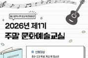 (케이시사타임즈) 울산학생교육문화회관은 오는 4월 4일부터 5월 17일까지 울산 지역 초등학교 5학년부터 고등학교 3학년 학생을 대상으로 ‘2026년 제1기 주말 문화예술 교실’을 운영한다. 주말 문화예술 교실은 학생들의 예술적 소질을 계발하고 주말 여가 시간을 알차게 보내도록 돕고자 마련됐으며, 특히 올해는 지난해보다 신규 강좌 6개를 추가해 학생들의 선택 폭을 대폭 넓혔다. 학생들은 자신의 관심사에 맞춰 토요일과 일요일 중 원하는 강좌를 선택해 참여할 수 있다. 토요일에는 목공, 영상편집과 제작, 친환경 공예(웜아트), 라탄 공예, 우쿨렐레 등을 운영한다. 일요일에는 그림(그래픽) 디자인, 도시 풍경 그리기(어반스케치), 인공지능 자료(콘텐츠) 제작, 드럼, 철사(와이어) 공예 등 총 10개 강좌를 운영한다. 참가자 모집은 오는 3월 16일 오후 9시부터 19일 오후 5시까지 진행된다. 울산교육청 통합예약시스템으로 선착순 접수하며, 모집 인원은 강좌별 15명씩 총 150명이다. 김현미 관장은 “이번 주말 문화예술 교실은 신규 강좌가 많이 개설된 만큼 학생들