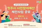 (케이시사타임즈) 청주시는 2027년 예산편성을 위한 시민참여예산 제안사업 공모를 오는 5월 31일까지 접수한다고 4일 밝혔다. 이번 공모는 시민이 직접 지역 발전을 위한 다양한 아이디어를 제안하고, 이를 예산 편성 과정에 반영함으로써 시민 삶의 질 향상과 청주시 발전에 기여하기 위해 마련됐다. 제안 대상 사업은 △생활 주변 불편 해소 등 주민생활과 직결되는 소규모 사업 △지역 주민의 복지 증진과 삶의 질 향상을 위한 사업이다. 다만 △법령 및 예산편성 관련 기준을 위반하는 사업 △특정 개인·단체의 이익을 위한 사업 △타 기관 소관 사업 △기타 공익을 저해하는 사업 등은 공모 대상에서 제외된다. 청주시민은 물론 지역 내 사업체 또는 기관에 종사하는 사람이라면 누구나 참여할 수 있다. 응모는 청주시청 누리집(시민참여-시민참여예산-예산사업 제안)을 통해 온라인으로 참여하거나, 읍·면·동 행정복지센터 방문 및 우편을 통해 제출하면 된다. 시는 접수한 제안사업을 바탕으로 담당 사업부서의 실행 가능 여부와 행정절차 등을 검토한 뒤 시민참여예산위원회 심의와 시민 의견 수렴 과정을 거쳐 우선순위를